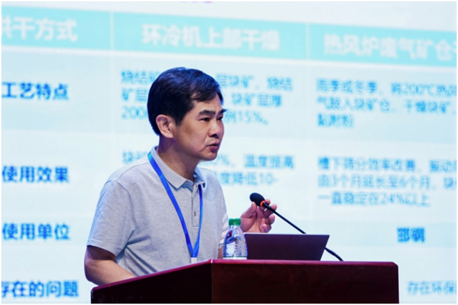 ▲梅鋼股份煉鐵廠副廠長李和平作題為“梅鋼燒結技術探索與實踐”的報告