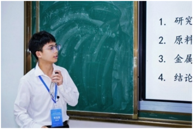 ▲貴州大學岑玉龍作題為“金屬鐵強化鉻鐵礦固態還原的機理研究”的報告