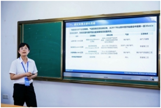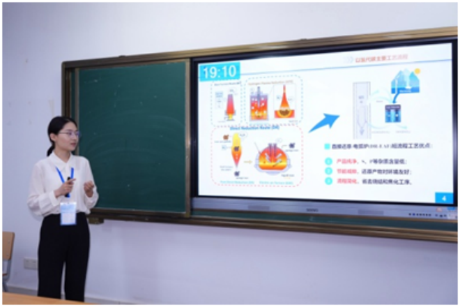 ▲華北理工大學郤亞娜作題為“豎爐氫冶金噴氧段氣體的燃燒與改質”的報告