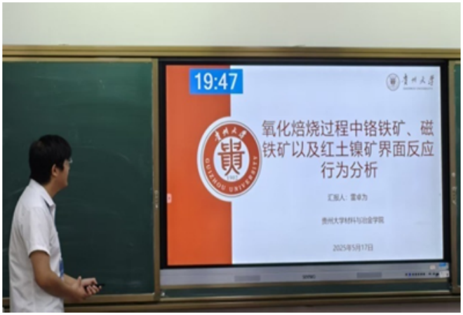 ▲貴州大學雷卓為作題為“鉻鐵礦、磁鐵礦、紅土鎳礦在氧化焙燒過程中的固結機理介紹”的報告