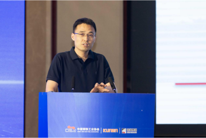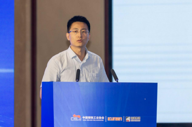 圖為中冶賽迪重慶環境谘詢有限公司運營與係統優化部副部長劉輝《工藝築基・數智賦能 — 鋼鐵企業能源轉型新範式》主題報告