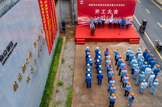 圖為2025年6月13日南鋼集團舉行電爐渣綠色低碳全量化利用項目開工儀式。(特約通訊員 吳斌 攝)