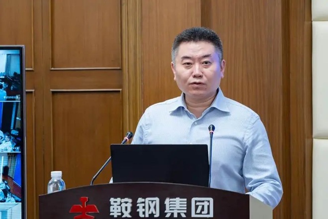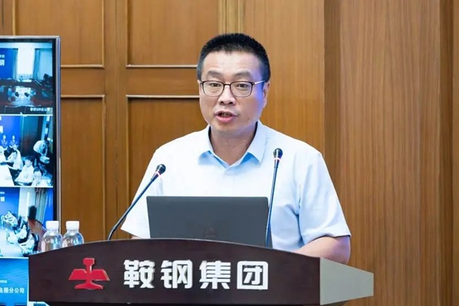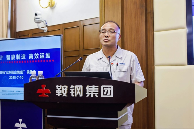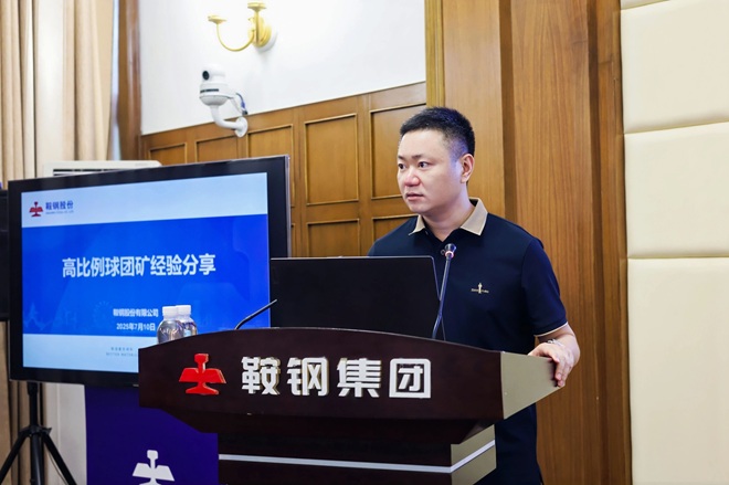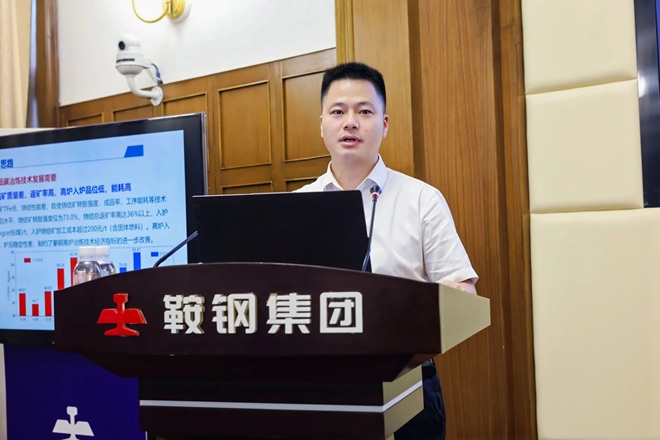 圖為鞍山鋼鐵股份煉鐵總廠廠長、黨委副書記蔣益作《高比例球團礦經驗》應用分享