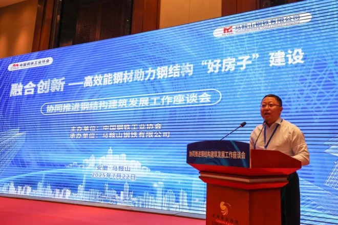 7月22日,由中國鋼鐵工業協會主辦、馬鞍山鋼鐵有限公司承辦的以融合創新——高效能鋼材助力鋼結構“好房子”建設為主題的協同推進鋼結構建築發展工作座談會在安徽馬鞍山召開。