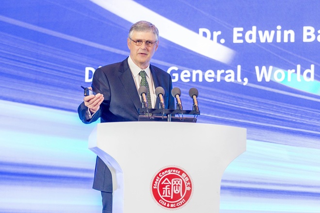 圖為塞維爾·亞彥出席“世界鋼鐵市場和產業動向”論壇