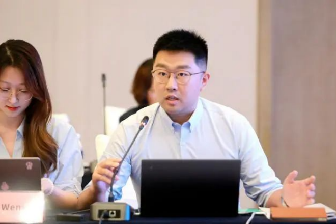 圖為馮超介紹中國鋼鐵綠色低碳創新進展並做交流發言