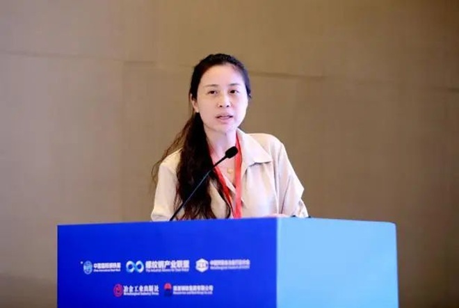 劉冬介紹了螺紋鋼產品發展現狀、螺紋鋼出口各國認證製度簡介,並分享了關於螺紋鋼企業綠色低碳發展路徑的思考。徐少兵做《建築用鋼及鋼結構 PCR 2.0與綠碳平台建設助力高端建築綠色低碳發展》主題報告並指出,在全球碳中和背景下,建築行業加速綠色轉型,采購低碳排放鋼材成為關鍵路徑。陝鋼集團研究總院副院長許宏安、南京淨環熱冶金工程有限公司副總經理於宏朋分別做《綠色智能直軋技術裝備產業化相關主題》《趁熱打鐵——長材高溫直軋技術變革》主題報告。