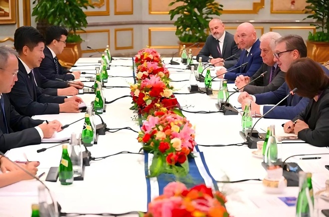 9月3日,來華出席紀念中國人民抗日戰爭暨世界反法西斯戰爭勝利80周zhou年nian活huo動dong的de塞sai爾er維wei亞ya總zong統tong武wu契qi奇qi在zai北bei京jing會hui見jian河he鋼gang集ji團tuan董dong事shi長chang劉liu鍵jian。雙shuang方fang回hui顧gu了le既ji往wang合he作zuo成cheng果guo,重zhong點dian探tan討tao了le共gong建jian中zhong塞sai聯lian合he實shi驗yan室shi和he未wei來lai發fa展zhan藍lan圖tu等deng內nei容rong。