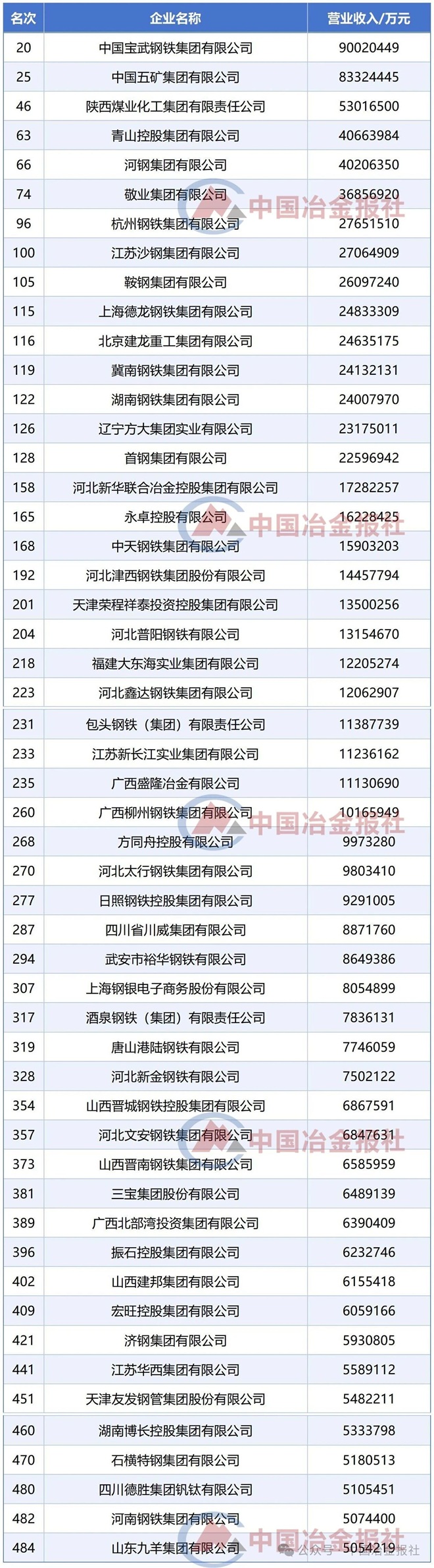 其中,多家鋼鐵冶金相關企業上榜!