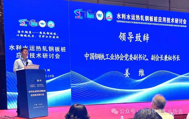 熱軋鋼板樁應用技術推廣工作組主任委員韓亞坤在大會發言中,以“從起步到突破,以協同促發展” 為核心,全麵梳理工作組自 2023年10月成立以來的實踐成果,並明確未來深耕水利領域的方向,為產業融合注入信心。