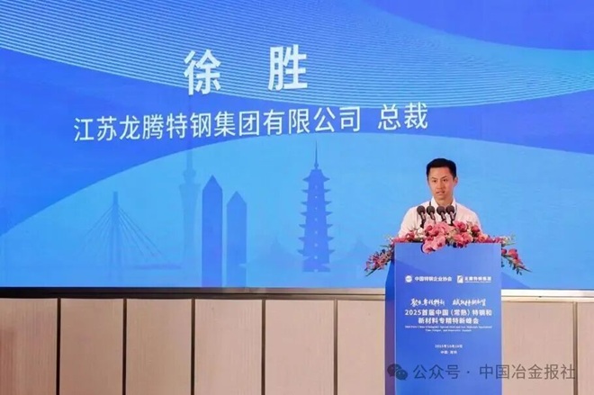 江蘇龍騰特鋼集團有限公司總裁徐勝作題為《從專精特新到國際競爭力:龍騰特鋼打造行業隱形冠軍的實踐》報告,分享了三點經驗,一是保持戰略定力,專精特新需要長期主義,唯有深耕細分領域,才能在行業調整期站穩腳跟。二是能力轉化:構建從研發突破、產品領先、標準製定到品牌價值的轉化鏈,研發突破形成產品優勢,產品領先推動標準製定,標準話語權鑄就品牌價值。三是生態協同,政企研發“同頻共振”。“發展過程中,我們受益於三大支撐:政策支撐、行業引導、產學研協同。”徐勝分享道。