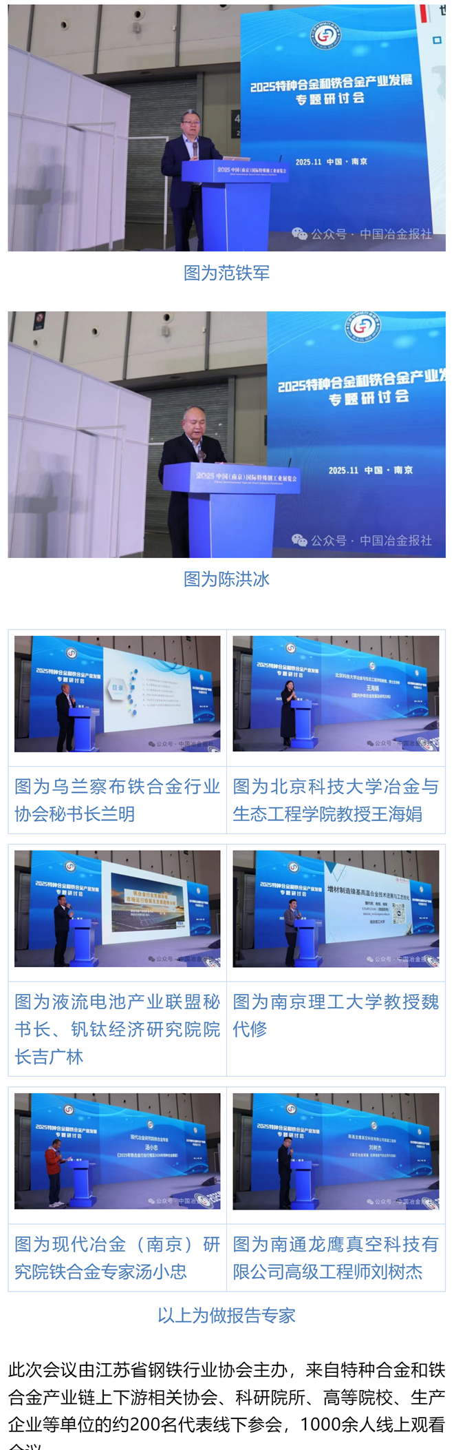 11月13日,2025特種合金和鐵合金產業發展專題研討會在江蘇南京召開。