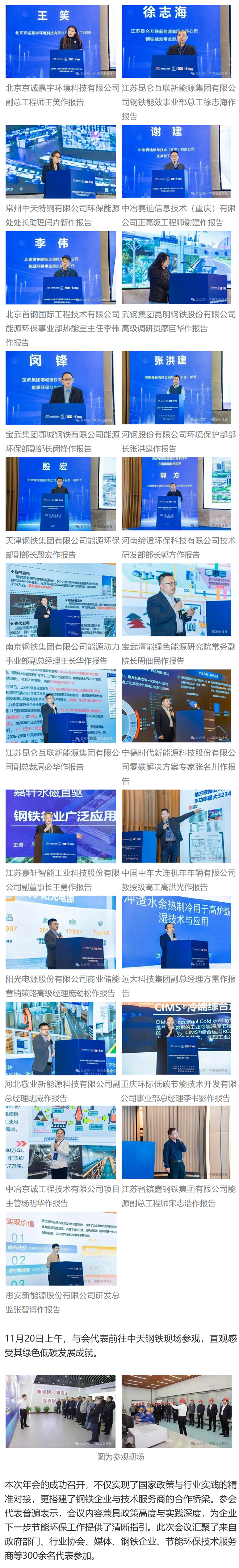 中國鋼鐵工業協會黨委副書記、副會長兼秘書長薑維,國家節能中心副主任閆勇哲,生態環境部大氣司副處長趙春麗(線上視頻參會),節能環保工作委員會主任、山東鋼鐵集團日照有限公司董事長王培文,中國鋼鐵工業協會副總工程師黃導、副秘書長馮超、專務理事張永傑,中國機械冶金建材工會冶金工作部部長王欣,中天鋼鐵集團有限公司董事局副主席、副總裁、黨委副書記高一平,南京鋼鐵集團有限公司副總裁朱平,全國人大代表、江蘇昆侖互聯新能源集團有限公司董事長劉懷平等出席會議。馮超、鋼鐵協會高級分析師兼處長陳麗雲主持上午會議。
