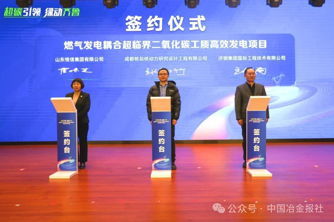 會上舉行了簽約儀式,成都核總核動力研究設計工程有限公司、濟鋼集團國際工程技術有限公司與山東鋼鐵集團有限公司就“燒結餘熱超臨界二氧化碳發電項目”,成都核總核動力研究設計工程有限公司、濟鋼集團國際工程技術有限公司與山東恒信集團就“燃氣發電耦合超臨界二氧化碳發電項目”簽署合作意向協議。