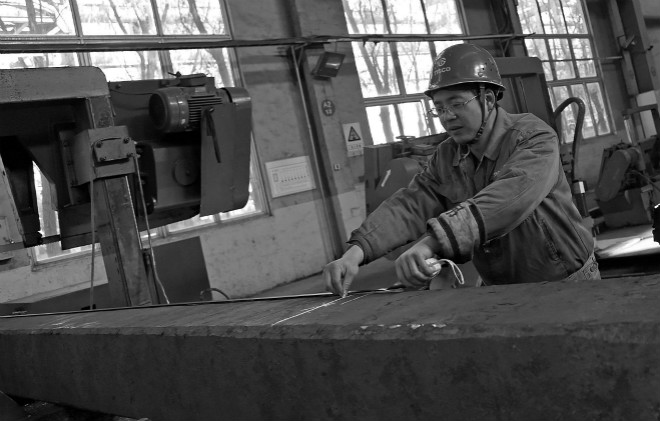 今年初以來,太鋼根據市場情況進一步調整了特鋼品種結構,連鑄車軸鋼實現批量化生產,車軸鋼連鑄比達到了80%以上的目標。圖為該公司型材廠職工正在生產車軸鋼。 (特約通訊員 王旭宏 通訊員 程峰 攝)