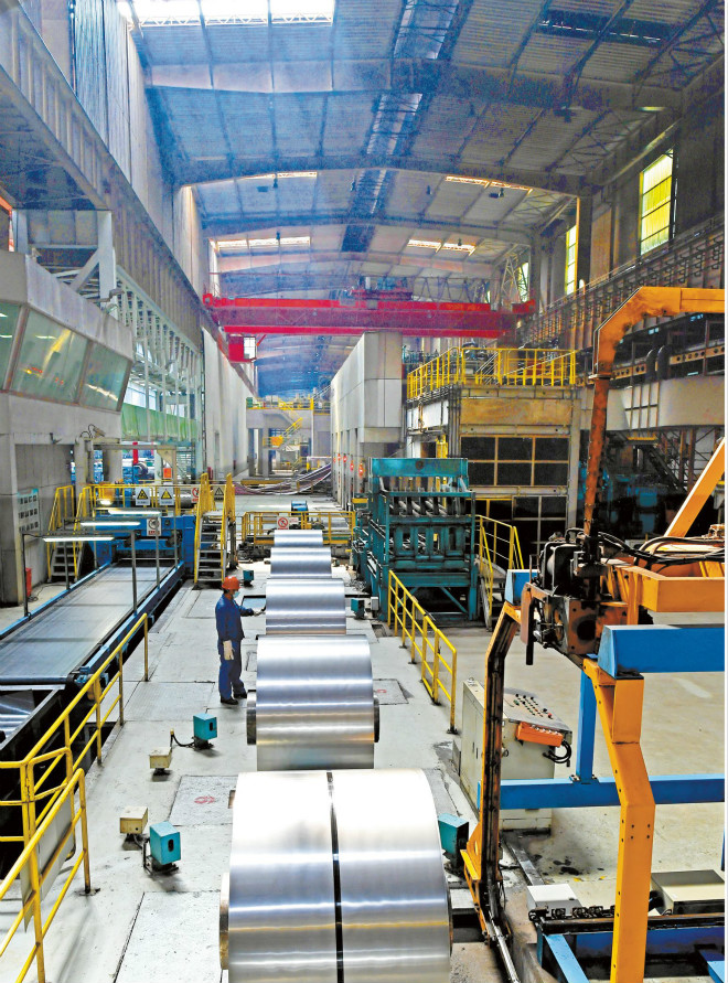 4月7日,太鋼冷軋矽鋼廠正在生產新能源汽車用無取向矽鋼(如圖)。今年初以來,太鋼通過大力研發超薄規格高牌號高磁感無取向矽鋼產品,全麵開啟了無取向矽鋼“新能源”時代。目前,太鋼該類產品已形成0.2毫米、0.25毫米、0.27毫米等係列,產品合作開發用戶由去年的2家增加到6家。 (特約通訊員 王旭宏 通訊員 高福生 攝)