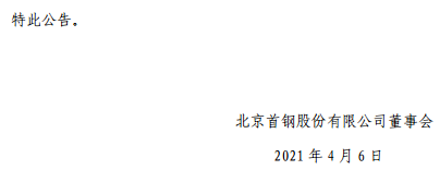 首鋼股份:北京首鋼股份有限公司2021年第一季度業績預告