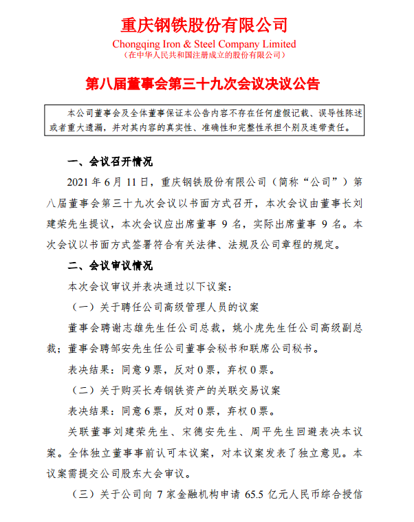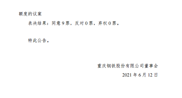 重慶鋼鐵第八屆董事會第三十九次會議決議公告
