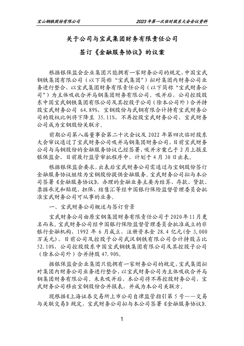 寶鋼股份:寶鋼股份2023年第一次臨時股東大會會議資料