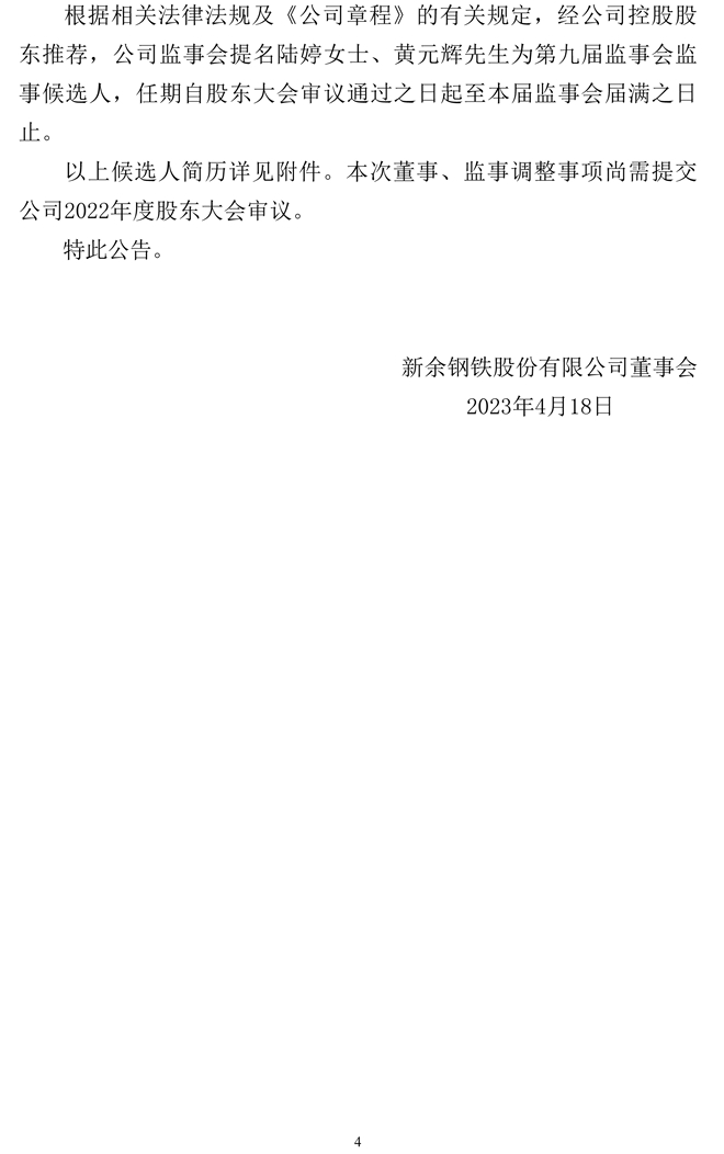 新鋼股份:新鋼股份關於董事和監事調整的公告