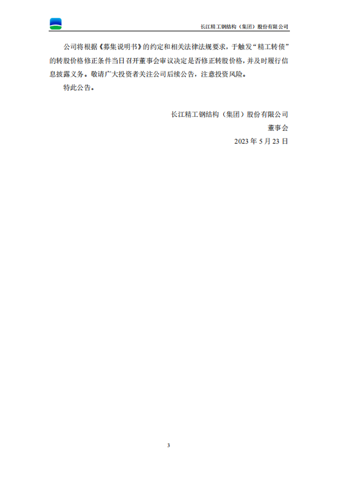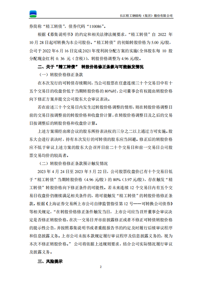 精工鋼構:精工鋼構關於“精工轉債”預計觸發轉股價格修正條件的提示性公告