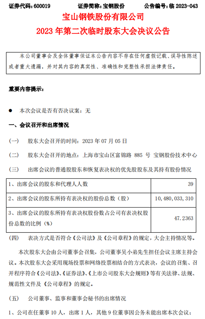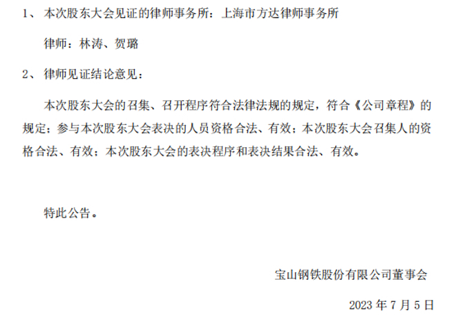 寶鋼股份:寶鋼股份2023年第二次臨時股東大會決議公告