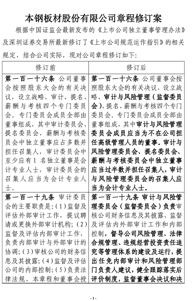 本鋼板材:本鋼板材股份有限公司章程修訂案