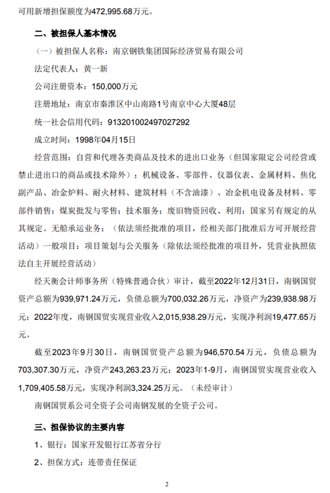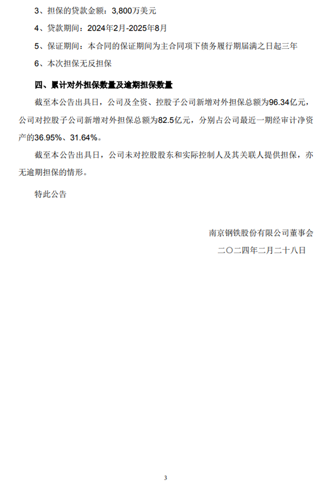 南鋼股份:南京鋼鐵股份有限公司關於對外提供擔保的進展公告