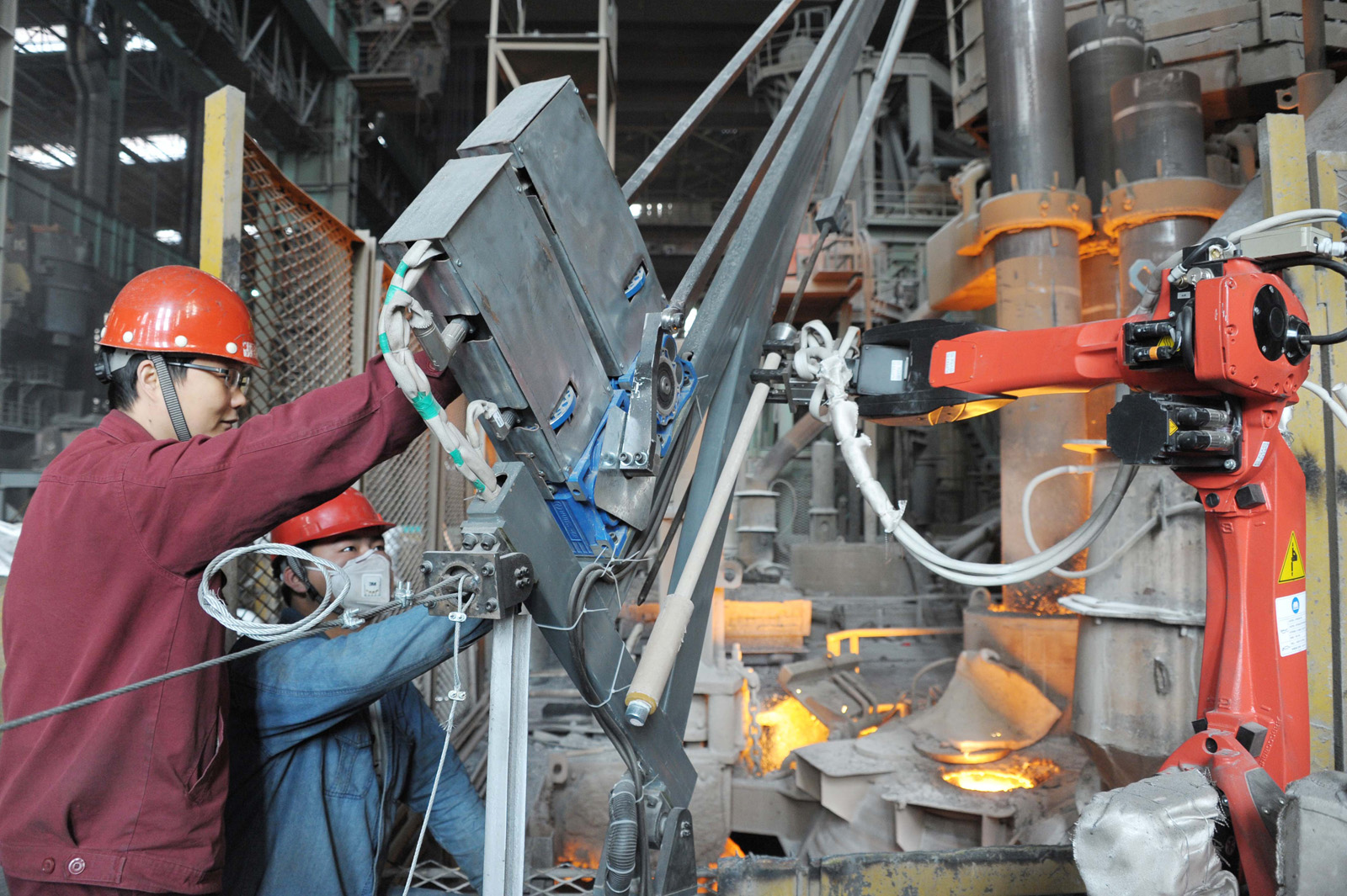 日前,沙鋼轉爐煉鋼一車間成功對LF爐實施機器人自動測溫取樣,取代了原先的人工測溫取樣,圖為員工正在對機器人運行軌跡進行測試。“十二五”以來,沙鋼堅定不移實施智能化發展戰略,加快推進機器人代替人工項目,確保2020年末完成1000-1500個機器人替代崗位目標。(記者 周麗娜 通訊員 孫靜波 攝)