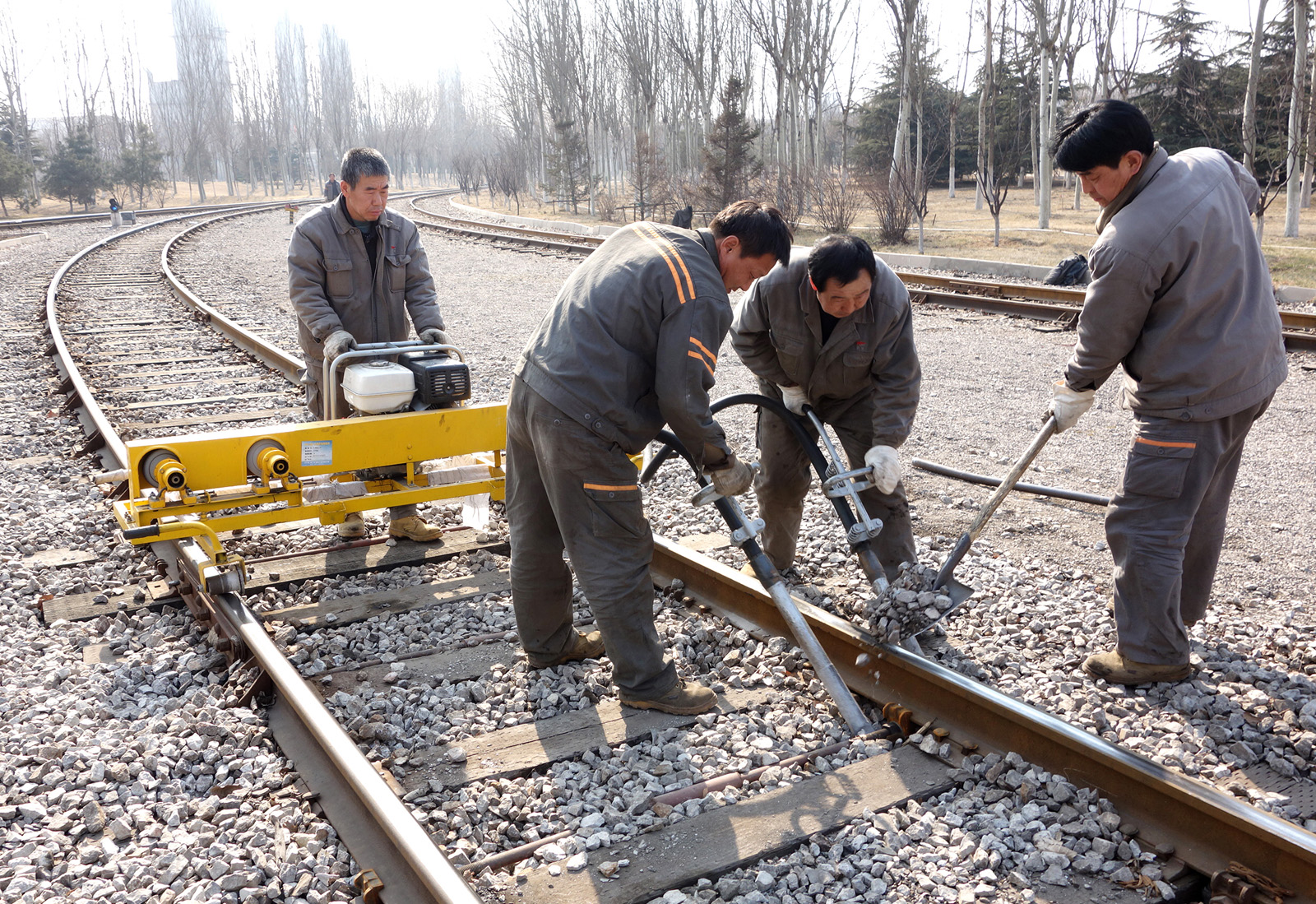 進入春季以來,河鋼唐鋼物流公司工務作業區職工緊緊抓住春融期間線路易發故障的現狀,全麵組織開展春季鐵路線路、電器設施隱患排查整改活動,通過采取區域整治、責任追責、安全包保等措施,實現鐵路設施安全、質量提檔升級,為全年公司安全運輸生產提供精良設備保障。圖為該公司鐵路運輸保障分廠鐵路線路維檢人員正在夯實路基、檢測線路軌距。(特約通訊員 劉會軍 通訊員 許長霞 攝)
