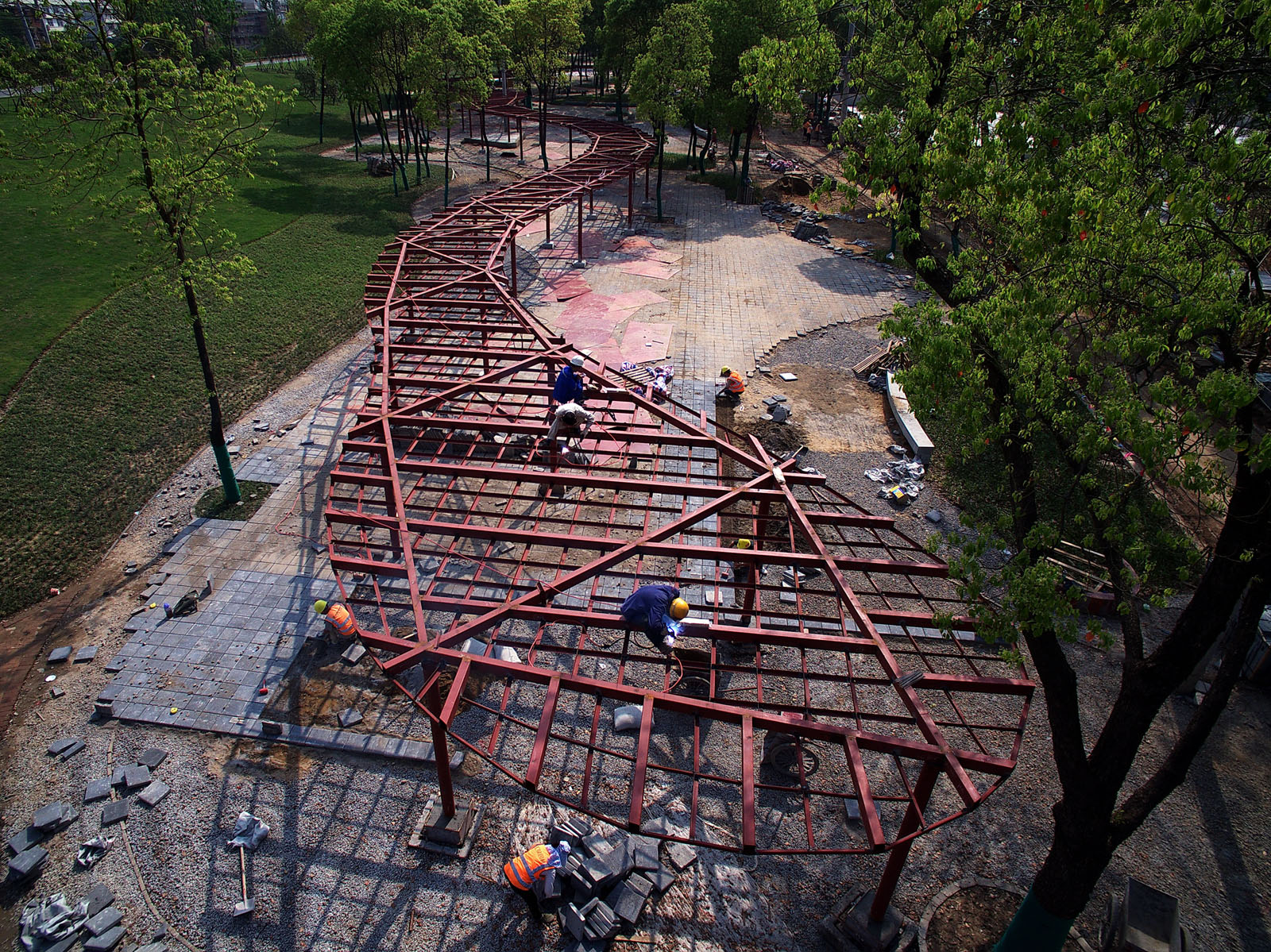 由中國一冶集團續建的湖北省武漢市青山江灘二期工程該項目總長3.934公裏,起自建設二路,止於建設九路。由西至東分設都市時尚景觀區、雨水花園生態實踐區、陽光草坪慢生活區、青山記憶景觀區及體育運動休閑區等,二期工程將於本月底完工。
