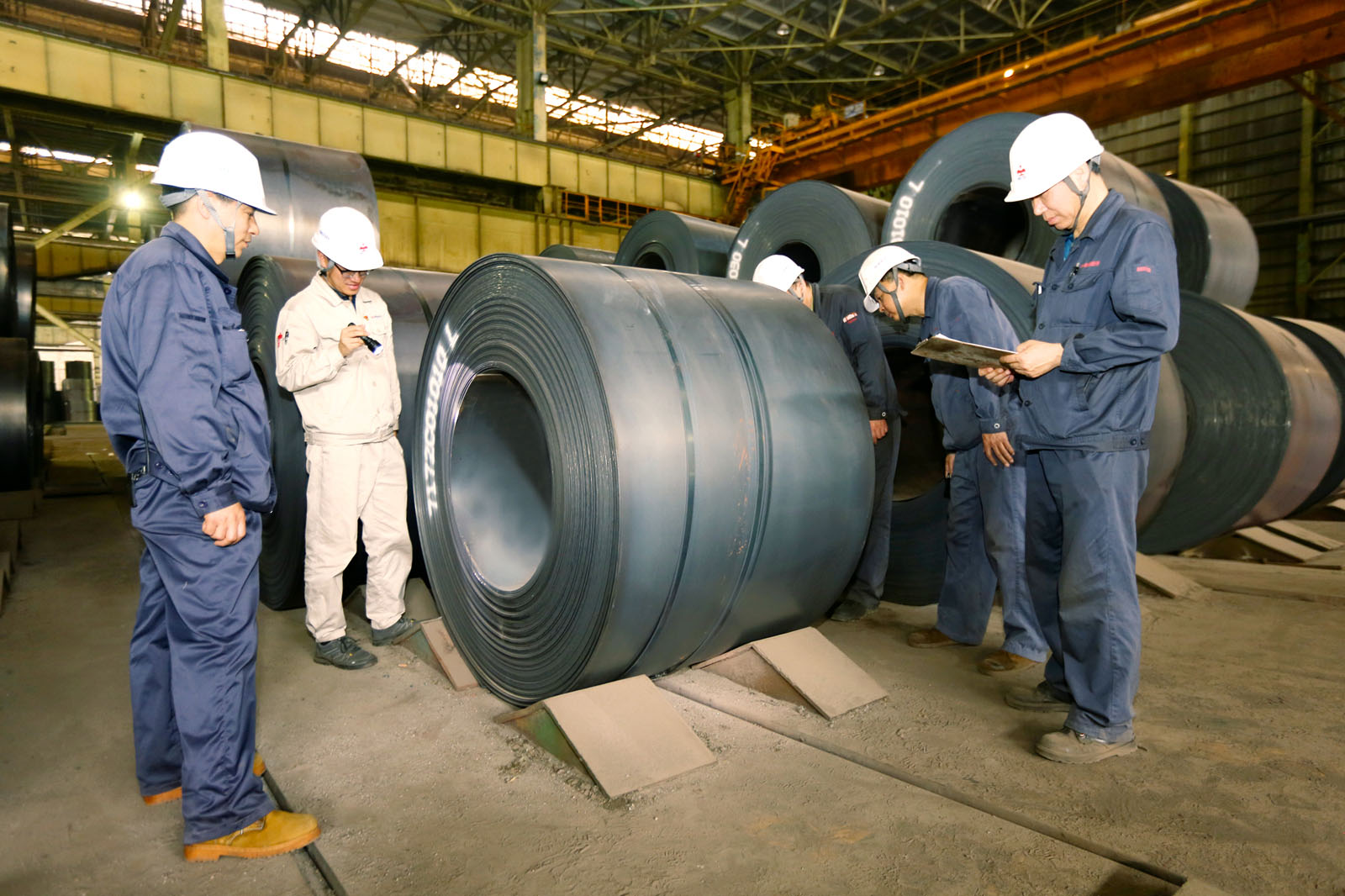 圖為鞍鋼股份熱軋帶鋼廠技術人員正在檢查TWIP1180HR鋼質量。(特約通訊員 張明傑 攝)