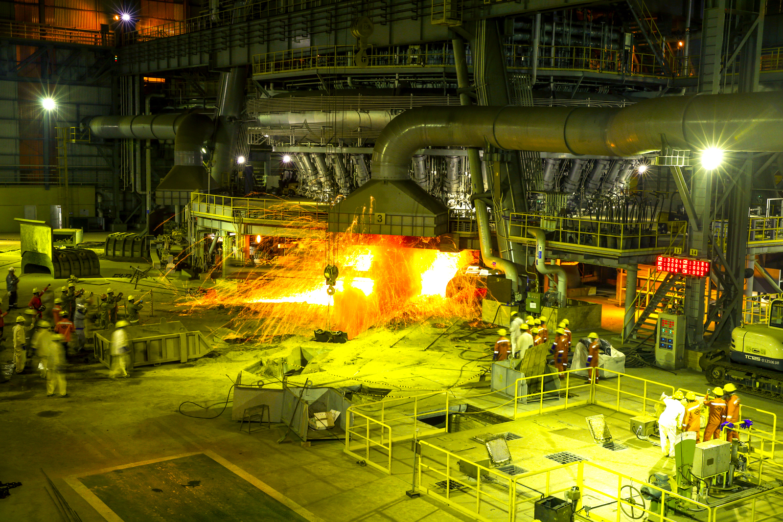 圖為台塑越南河靜鋼鐵1號高爐出鐵場景。