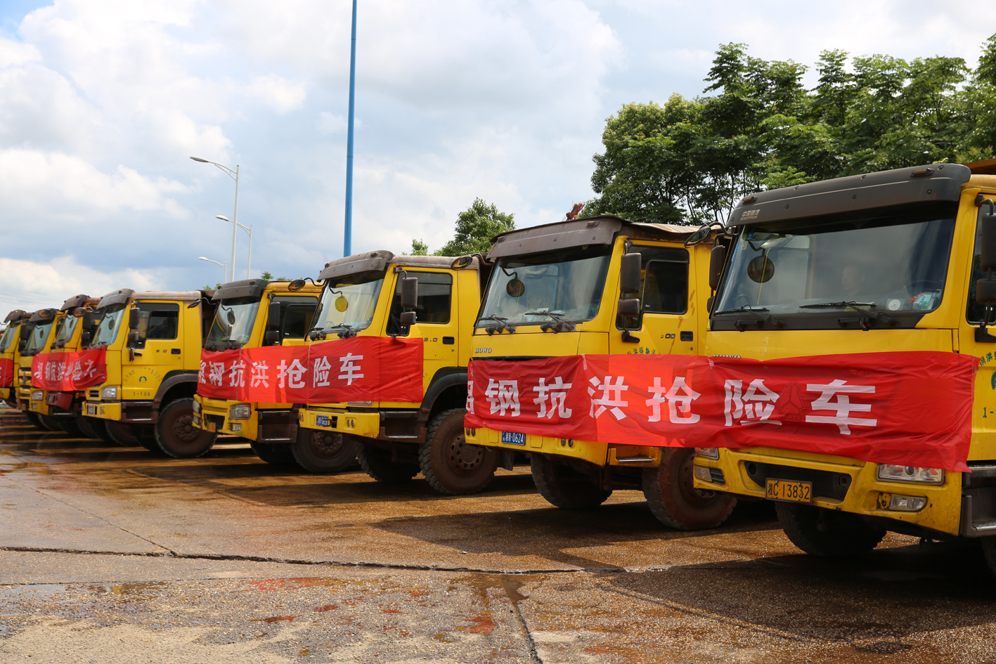 圖為華菱湘鋼組織的抗洪搶險車隨時待命。(胡石強 攝)