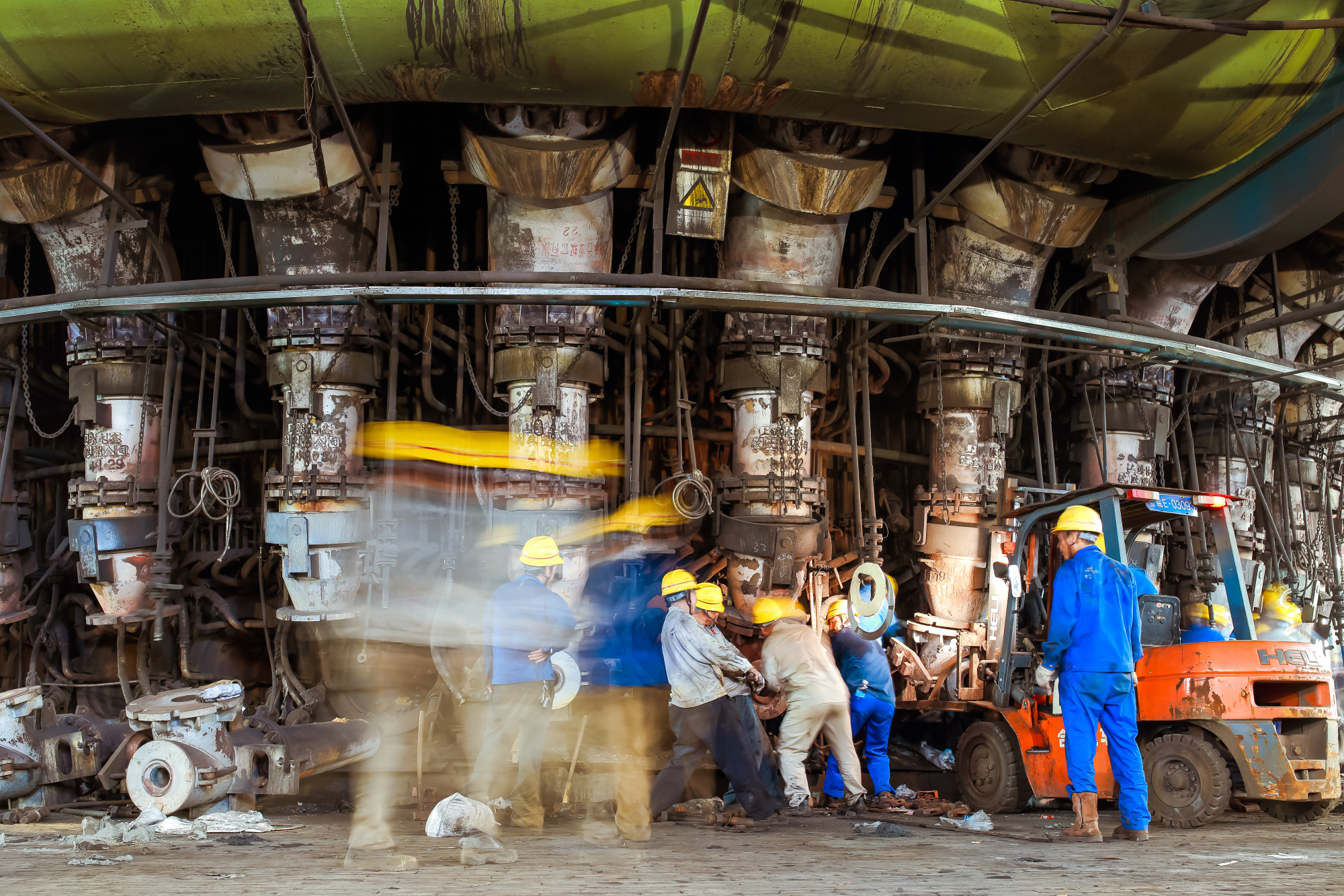 7月11日淩晨3時,馬鋼三鐵總廠突發電氣故障,導致A座高爐緊急休風。為守住生產經營“生命線”,馬鋼調集有效資源全力搶修。數百名搶修職工在“三伏天”裏揮汗如雨,實行24小時連續作業搶修。經過84個小時持續奮戰,7月14日15時45分,高爐順利複風生產。(特約通訊員 張明偉 攝)