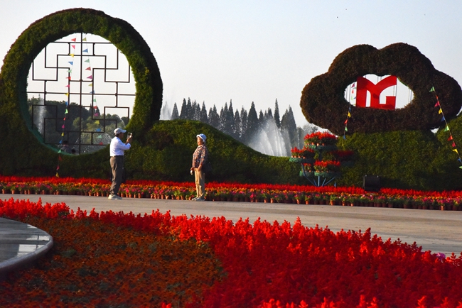 10月8日下午,安徽省馬鞍山市的市民在花雨廣場前拍照、遊玩(如圖)。今年國慶期間,馬鞍山市在公共場所布置了眾多新穎別致、寓yu意yi深shen刻ke的de大da型xing植zhi物wu景jing點dian,營ying造zao歡huan樂le祥xiang和he的de氣qi氛fen,喜xi迎ying黨dang的de十shi九jiu大da盛sheng會hui召zhao開kai。大da型xing立li體ti植zhi物wu景jing點dian由you數shu萬wan盆pen鮮xian花hua和he新xin型xing環huan保bao材cai料liao精jing心xin打da造zao,以yi流liu線xian型xing的de構gou造zao模mo式shi和he鬥dou誌zhi昂ang揚yang的de抽chou象xiang造zao型xing,寓yu意yi馬ma鋼gang人ren秉bing承cheng科ke學xue發fa展zhan觀guan,致zhi力li於yu生sheng態tai文wen明ming建jian設she,不bu斷duan創chuang新xin、再鑄輝煌。 (特約通訊員 胡智慧 攝)