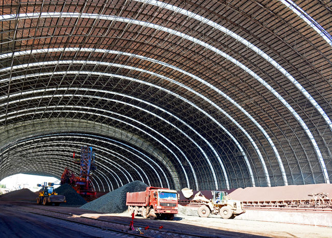 圖二:不鏽鋼防塵大棚內,運礦車輛有序作業。