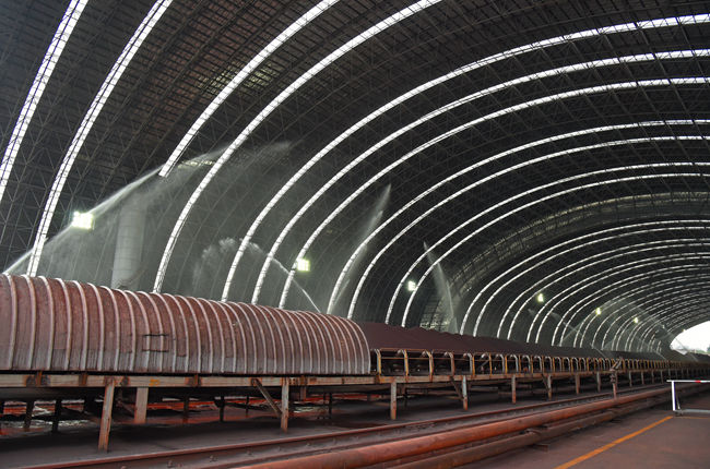日前,國內首個不鏽鋼防塵大棚——太鋼廠區原料場正式投入使用。該大棚封閉麵積達6.2萬平方米,全部采用太鋼自己生產的不鏽鋼材料,防塵效果明顯,初步統計揚塵減排率達到了96.75%。(特約通訊員 王旭宏 攝)
