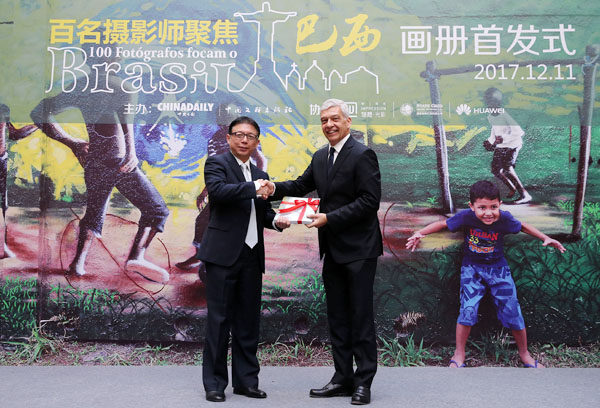 12月11日,《百名攝影師聚焦巴西》畫冊在中國日報社首發。為增進中國與巴西的人文交流、深化兩國傳統友誼,今年中國日報社策劃了“百名攝影師聚焦巴西”攝(she)影(ying)活(huo)動(dong),組(zu)織(zhi)了(le)一(yi)批(pi)中(zhong)國(guo)頂(ding)尖(jian)攝(she)影(ying)師(shi)赴(fu)巴(ba)西(xi)采(cai)訪(fang),並(bing)將(jiang)兩(liang)國(guo)百(bai)餘(yu)位(wei)攝(she)影(ying)師(shi)在(zai)巴(ba)西(xi)拍(pai)攝(she)的(de)二(er)百(bai)餘(yu)幅(fu)經(jing)典(dian)作(zuo)品(pin)彙(hui)集(ji)成(cheng)冊(ce),向(xiang)讀(du)者(zhe)全(quan)方(fang)位(wei)呈(cheng)現(xian)這(zhe)塊(kuai)充(chong)滿(man)活(huo)力(li)的(de)土(tu)地(di)上(shang)秀(xiu)美(mei)的(de)自(zi)然(ran)風(feng)光(guang)和(he)多(duo)彩(cai)的(de)風(feng)土(tu)人(ren)情(qing)。巴(ba)西(xi)駐(zhu)華(hua)大(da)使(shi)馬(ma)尚(shang)、中國駐巴西大使李金章分別為畫冊撰寫了序言。