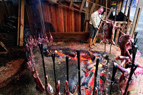 在南裏奧格蘭德州,一名男子在戶外製作炭火烤肉。(作者:Kais Ismail)