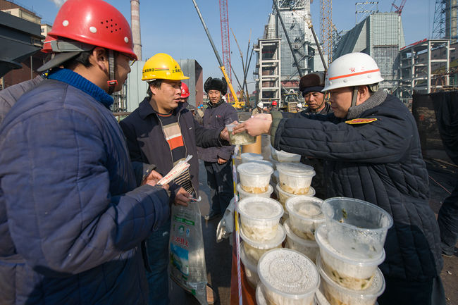 12月22日冬至這天,安鋼工程技術總公司組織機關工作人員和誌願者來到安鋼重點環保工程燒結機煙氣脫硫脫硝建設工地,開展了“冬至送溫暖,工地驅嚴寒,萬枚餃子送現場”活動。他們把香濃的餃子送到工地,為一線職工“安耳朵”。圖為誌願者正在為職工遞上熱騰騰的餃子。(特約通訊員 殷海民 通訊員 平娜 攝)