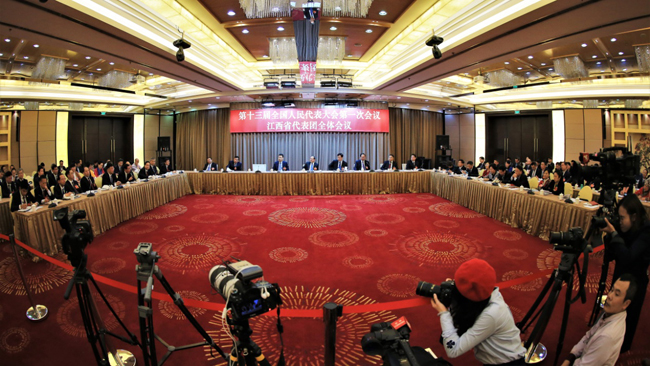3月6日15時,第十三屆全國人民代表大會第一次會議江西代表團舉行全體會議,審議政府工作報告,並向中外媒體開放,回答記者提問。