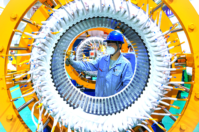 10月10日至12日,由中國新聞攝影學會、中共黑龍江省佳木斯市委宣傳部聯合舉辦的百家媒體聚焦佳木斯攝影采訪活動成功舉行,來自新華社、經濟日報社、工人日報社、中國冶金報社等央媒、省市級媒體的100餘名攝影記者走進 佳木斯各個區縣,聚焦佳木斯高質量發展取得的新成效,傳遞經濟社會發展的新畫麵。圖為10月10日,工作人員在哈電集團佳木斯電機股份有限公司的車間裏生產作業。該公司持續在數字化、智能化建設與新產品研發和科技創新上加大力度,全麵推進數字化轉型。(本報記者 顧學超 攝)