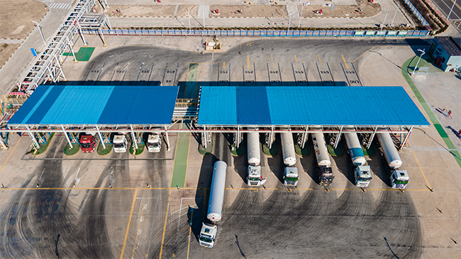 11月18日,山鋼集團日照公司LNG(液化天然氣)區域槽罐車正在裝車外運(如圖)。據悉,作為山東省冶金行業先進焦爐煤氣製LNG產線,自該產線投產以來,山鋼日照公司始終堅持“安全環保、穩產高產”生產組織原則,製訂安全高效生產工作方案,在安全增產保質上出實招、拚硬招,實現了產品質量、產量“雙提升”。截至11月12日,該公司焦爐煤氣製LNG產量突破百萬噸大關。(王宏升/文特約通訊員郭陽/攝)