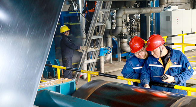 11月18日,中國寶武八鋼首條鋅鋁鎂鍍層板生產線熱負荷試車成功,第一卷鋅鋁鎂鍍層板產品成功下線(如圖)。八鋼於2024年投資建設鋅鋁鎂生產線,設計年產規模35萬噸。其產品定位於高品質鋅鋁鎂鍍層板,成品厚度為0.4毫米~3.0毫米,寬度750毫米~1250毫米。據了解,“十四五”期間,新疆維吾爾自治區光伏發電行業對支架用鋼板的總需求預計超過200萬噸,每年需求不少於40萬噸。八鋼快速建設鋅鋁鎂產線,將為新疆新能源建設提供高品質的鋅鋁鎂鍍層板產品和服務。(姚海山攝)