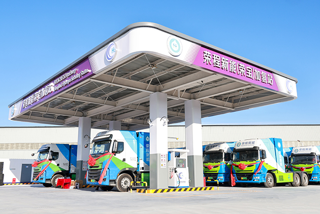 12月2日,天津市靜海區首座自用加氫站——榮程新能(榮寶)加氫站啟用。該加氫站由榮程新能集團與寶來集團合作建設,以此為基礎,雙方將開通靜海區大邱莊鎮—天津港、大邱莊鎮—唐山等氫能運輸線路,助力區域產業升級和京津冀交通運輸綠色低碳轉型。據悉,此座加氫站日加氫能力為4噸,可滿足100輛氫能重卡的加氫需求。圖為氫能重卡加氫現場。(遊思行攝)