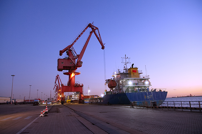 12月9日,首鋼京唐運輸部成品碼頭產品裝船場景(如圖)。近年來,首鋼京唐抓住高質量共建“一帶一路”的重大機遇,充分發揮高端產品優勢, 積極拓展海外市場,為“一帶一路”共建國家和地區提供優質綠色產品和服務,開發出風電鋼、水電鋼等新能源用鋼係列產品。首鋼京唐通過開展高強、超薄、輕質等特色產品研發,生產高強度、耐腐蝕、長壽命、輕量化、可循環的綠色低碳產品,實現從產品應用上的減碳,助力“一帶一路”沿線國家和地區重點水電工程綠色升級。截至目前,首鋼京唐向“一帶一路”國家和地區運送綠色產品逾50萬噸。(薑林憲/文楊立文/攝)