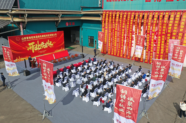 11月9日,山西晉南恒奕晟綠色建築科技有限公司開業慶典在晉南鋼鐵集團舉行(如圖)。據悉,山西晉南恒奕晟綠色建築科技有限公司是一 家集研發、設計、製造、銷售與服務為一體的大型鋼結構企業,配備智能化設備,業務涵蓋大型鋼結 構工程、鋼結構綜合建築、大跨度鋼結構橋梁及網架結構的建設與安裝等領域。其依托與晉南鋼鐵的深度戰略合作,采用晉南鋼鐵綠色型鋼,在廠區內即可完成從原材料到成品的全流程生產,並采用太陽能光伏發電作為清潔能源,形成了完整的產業鏈體係,真正實現了綠色環保高效發展。(鄒瑩/文 特約通訊員 丁衛國 攝)