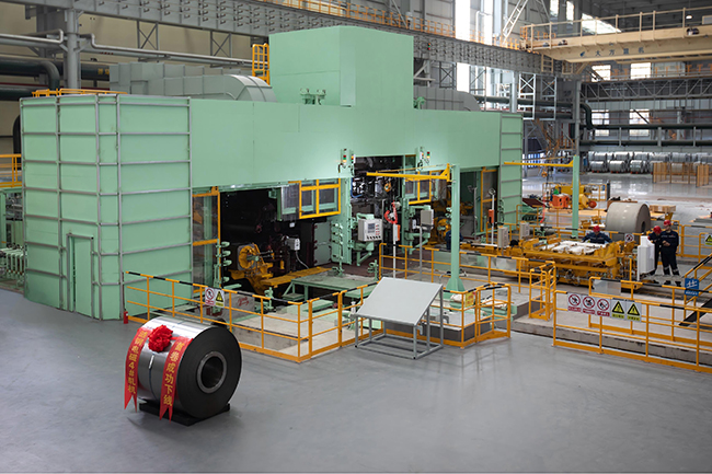 11月15日,湖南鋼鐵集團漣鋼電磁材料公司首卷取向矽鋼在其軋鋼作業區4號軋機成功下線(如圖)。這標誌著湖南省高等級取向矽鋼產業鏈實現“湘產化”,填補了中南地區高端電工鋼空白,將為輸變電、新能源汽車等下遊產業提供核心材料支撐。(孫遠平 攝)