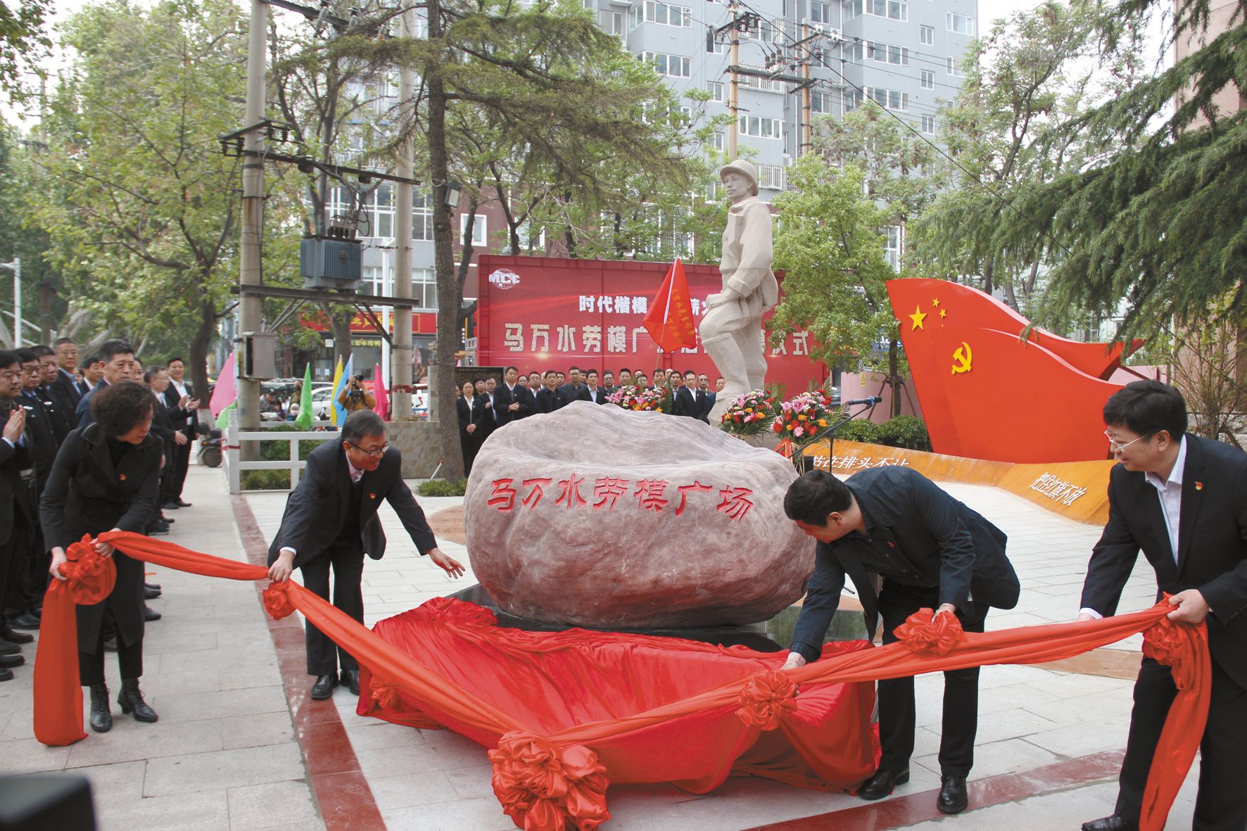 圖為中國華冶舉行馬萬水勞模廣場揭幕儀式。